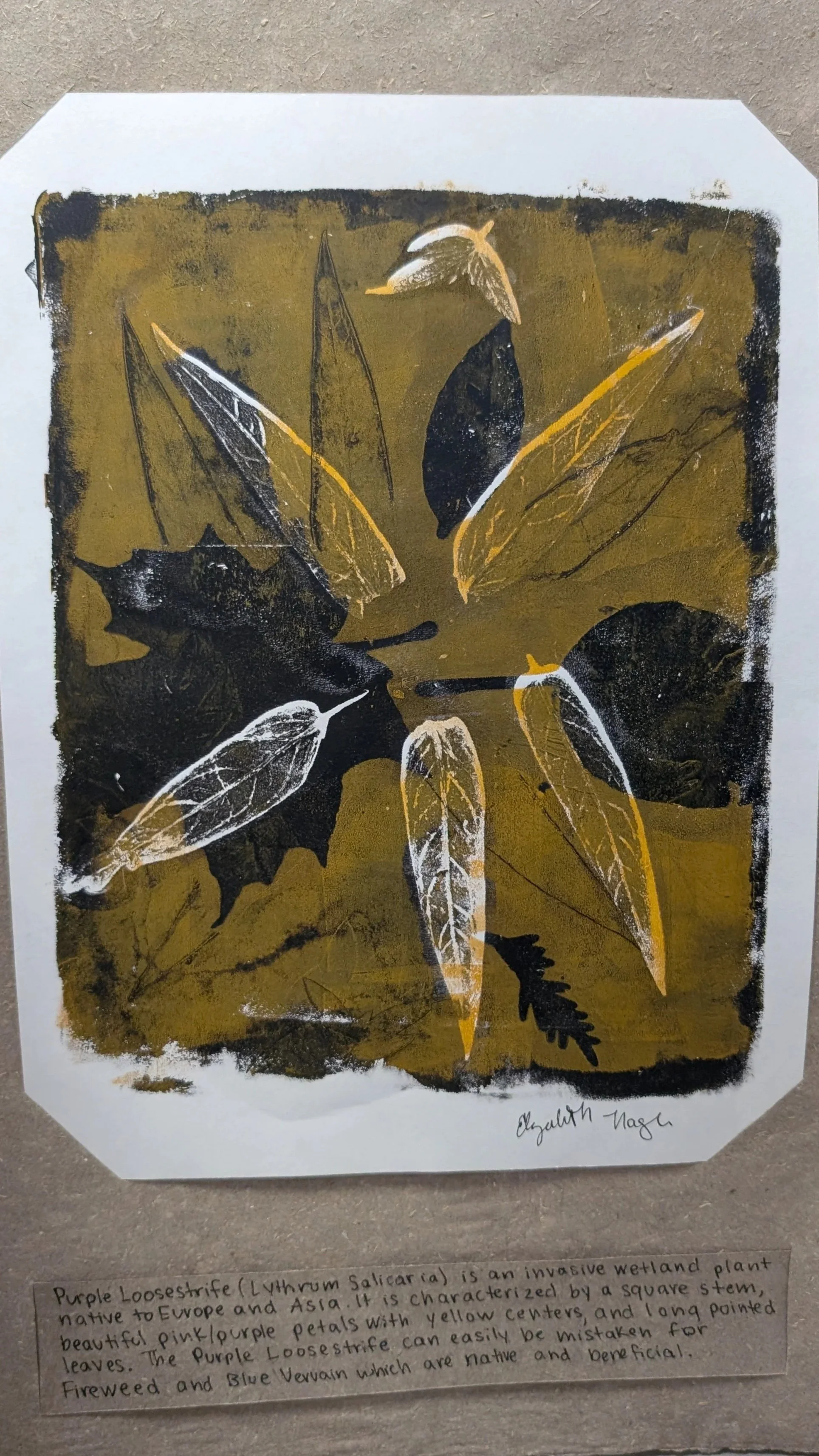Developed through multiple in-person site visits and engagements with WSCC students in botany and design, the project culminated in a co-designed artists’ book by John and Potter, featuring student-produced plant prints created using the Gelli plate method. Through research, site visits, foraging walks, and a guided kayak trip along the river led by Professor Paul Bilinski, students explored the layered histories of Michigan’s local flora and their relationship to the Midwest biome.
